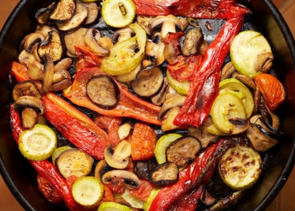 Перекладываем овощи в жаропрочную форму и запекаем 30-40 минут в духовке при 170°С.