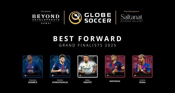 Организаторы престижной футбольной премии Globe Soccer Awards опубликовали список из пяти финалистов, претендующих на звание лучшего футболиста планеты 2025 года. Информация была представлена в социальной сети X. В шорт-лист вошли 5 выдающихся игроков европейского футбола: французские звезды Усман Дембеле и Витинья (оба представляют «Пари Сен-Жермен»), их соотечественник Килиан Мбаппе, недавно перешедший в мадридский «Реал», а также испанский вундеркинд Ламин Ямаль и бразильский виртуоз Рафинья, выступающие за «Барселону». Globe Soccer Awards - ежегодная церемония награждения, на которой определяются люди, совершившие наибольшие достижения в футбольной среде по итогам года. Победители в различных номинациях определяются путём голосования. Церемония награждения состоится в Дубае (ОАЭ) 28 декабря.