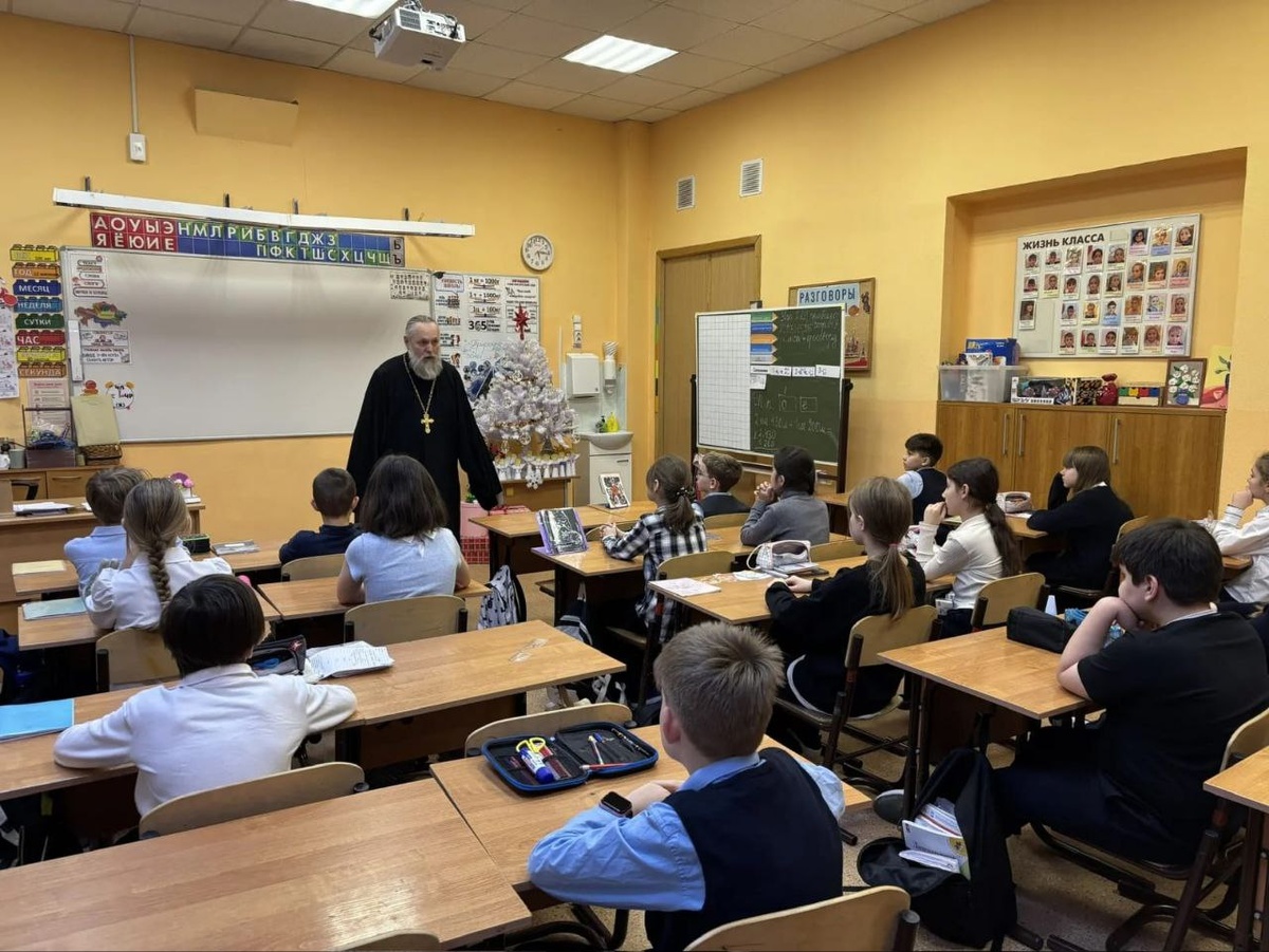 Настоятель храма иерей Димитрий Туркин провел урок в 4-м классе школы 1590 - 17 декабря 2025 г.
