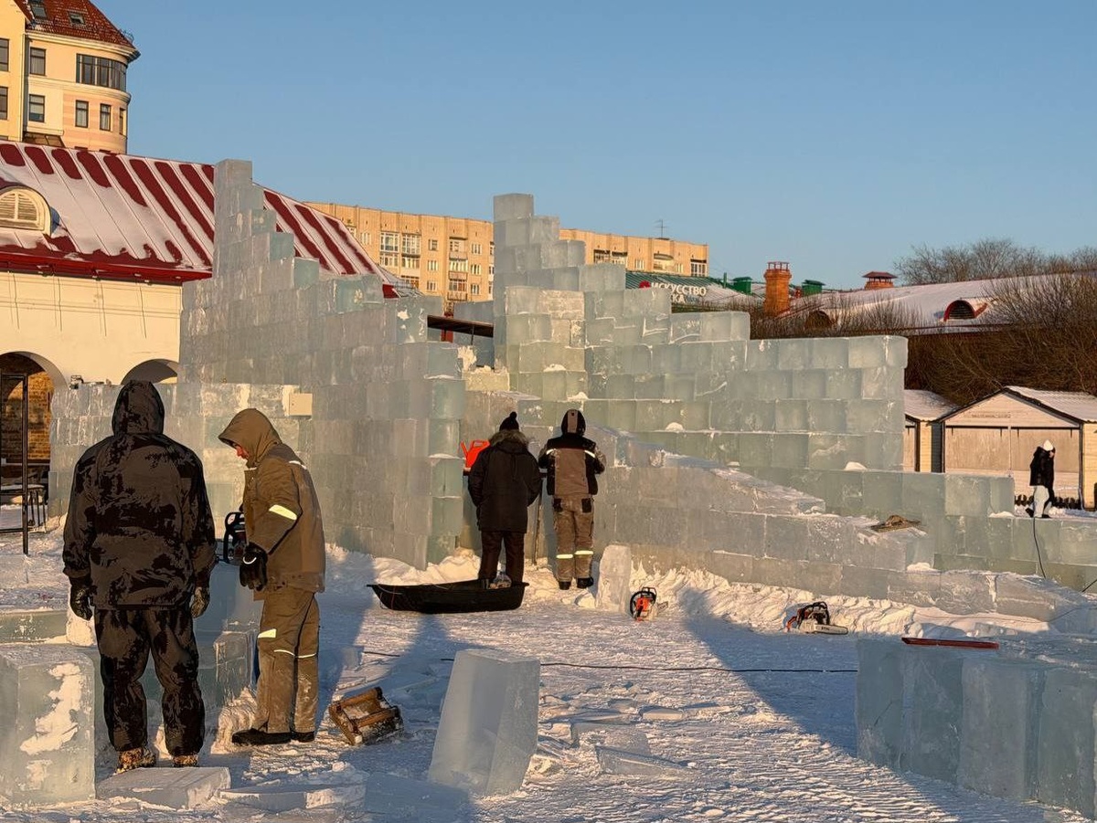 Тарские ворота, фигуры ангелов и светящиеся столбы: в Омской крепости строят горки и ледяные скульптуры
