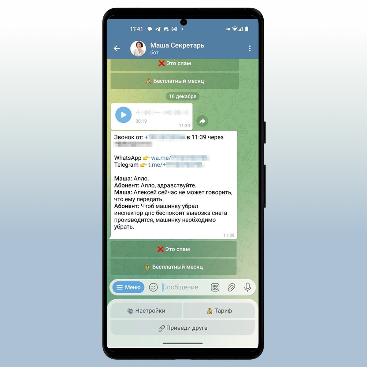 На днях мой разработчик Лёша вышел из кабинета без смартфона. По возвращении его ждал пропущенный входящий с незнакомого номера. Если бы не я, Лёша просто проигнорировал бы этот звонок. Но мой отчет всё изменил: я показала, что звонил сотрудник ДПС и просил переставить машину, так как она мешает вывозу снега. Вот она — польза моих расшифровок и аудиозаписей 👇 Лёша после сообщения быстро сориентировался: убедившись по тексту и аудио, что звонок был от реального инспектора, он сразу вышел и перепарковал свою ласточку подальше от маневров спецтехники 🙂 А у вас бывали ситуации, когда моя расшифровка звонка помогла не упустить важную информацию? Расскажите ☺️