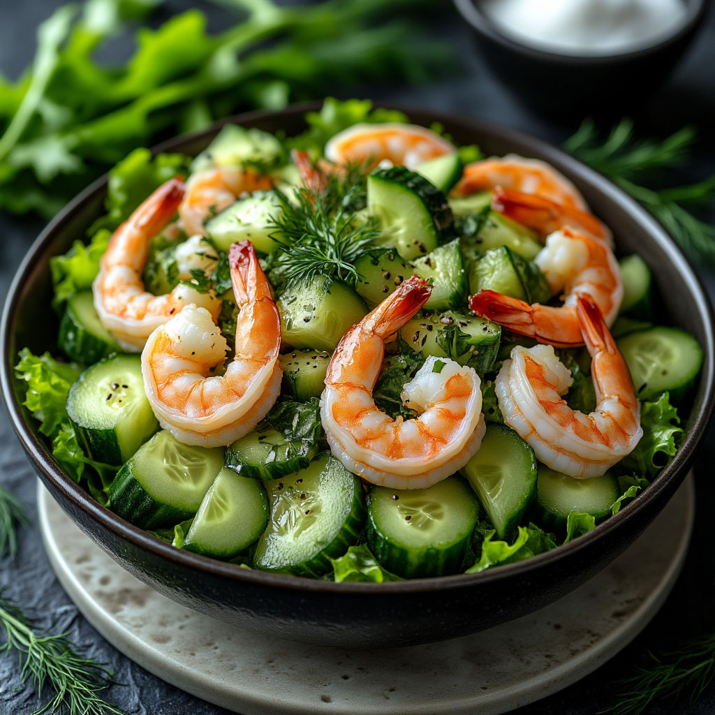 3. Смешать креветки, авокадо и огурцы в салатнике.