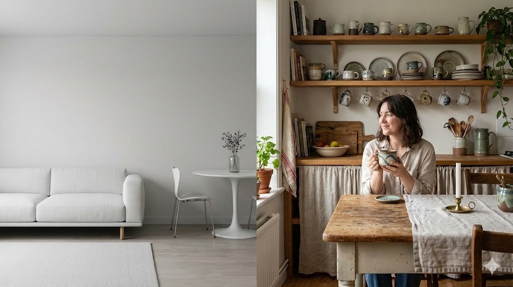 Глобальный тренд 2020-ых годов - романтизация быта и повседневной жизни. Люди перестали гнаться за идеальным интерьером из журналов и начали вкладываться в красивую посуду для дома и мелочи, которые делают обычные дела приятными. В квартире может не быть полноценной столовой или дизайнерского дивана, зато на полке стоит коллекция керамических кружек ручной работы за 500-2000 рублей каждая. Пандемия и нестабильная обстановка заставили людей пересмотреть отношение к домашнему уюту. Если раньше было принято следовать социальным нормам и создавать "правильные" пространства в стиле минимализм, то сейчас акцент смещается на персонализацию интерьера и личное удобство. Уходит тренд на минимализм против уюта и функциональность ради функциональности. Приходит стремление к уникальному быту, наполненному важными сердцу вещами: винтажной посудой, льняным текстилем, атмосферными деталями. Это не просто покупки для дома - это инвестиции в домашний уют и эмоциональное благополучие. Концепции hygge