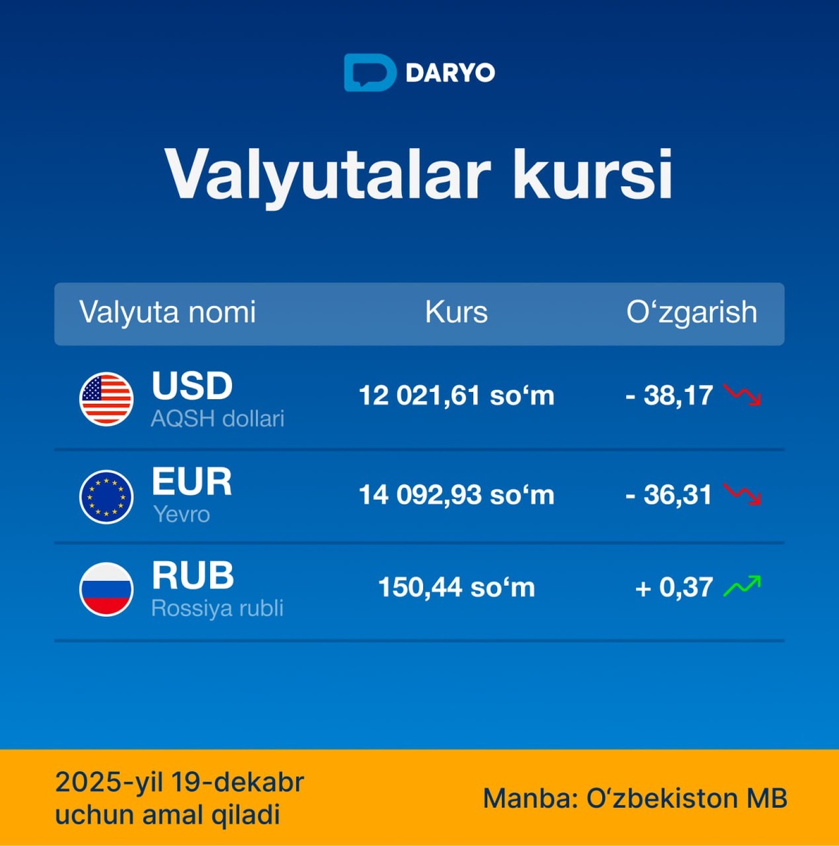 🇷🇺 rubl 150,44 soʻm (+0,37)