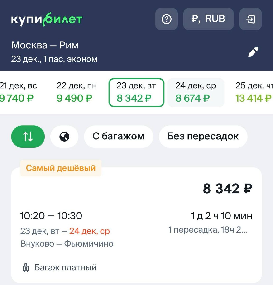 ! Потому что мы нашли дешёвый смарт-билет из Москвы за 8 400 рублей! Пицца, вкусное вино, паста и плюс 15 на улице — звучит идеально, правда? С вашим руководством на работе мы договоримся, не переживайте. Вылет 23 декабря. Билеты тут. 🔥Подписаться на Купибилет