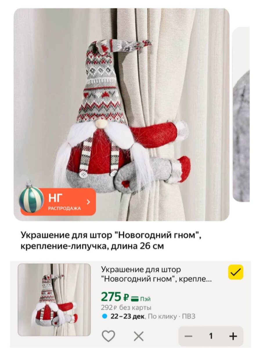 Украшение для штор "Новогодний гном", крепление-липучка, длина 26 см https://market.yandex.ru/cc/8HWmdY 🛍DEC122-AF — скидка 100 ₽ на один любой заказ от 5000 ₽ ✅ Канал по скидкам 🔣 Бот с промокодами