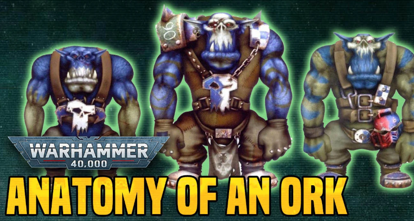 Голова орка, как и у многих ксеносов галактики, по строению похожа на человеческий череп, хотя и отличается по форме и цвету. Зубы указывают на всеядность или всеядность, что связано с их примитивной стайной организацией. Череп, как и многие другие части тела орка, намного толще человеческого, что придает ему прочность, значительно превосходящую человеческую. Клыки на лице орка вряд ли связаны с потреблением пищи (хотя орки фотосинтезируют, они также потребляют пищу, в основном сквигов) и скорее служат для украшения или боя, что более вероятно. У них заостренные уши, как у эльдаров, хотя плотность нервных скоплений низкая, что указывает на упрощенный подход к созданию орков. Все это дает оркам простое, эффективное и прочное тело, позволяющее им хорошо сражаться, но при этом жертвующее качеством ощущений.