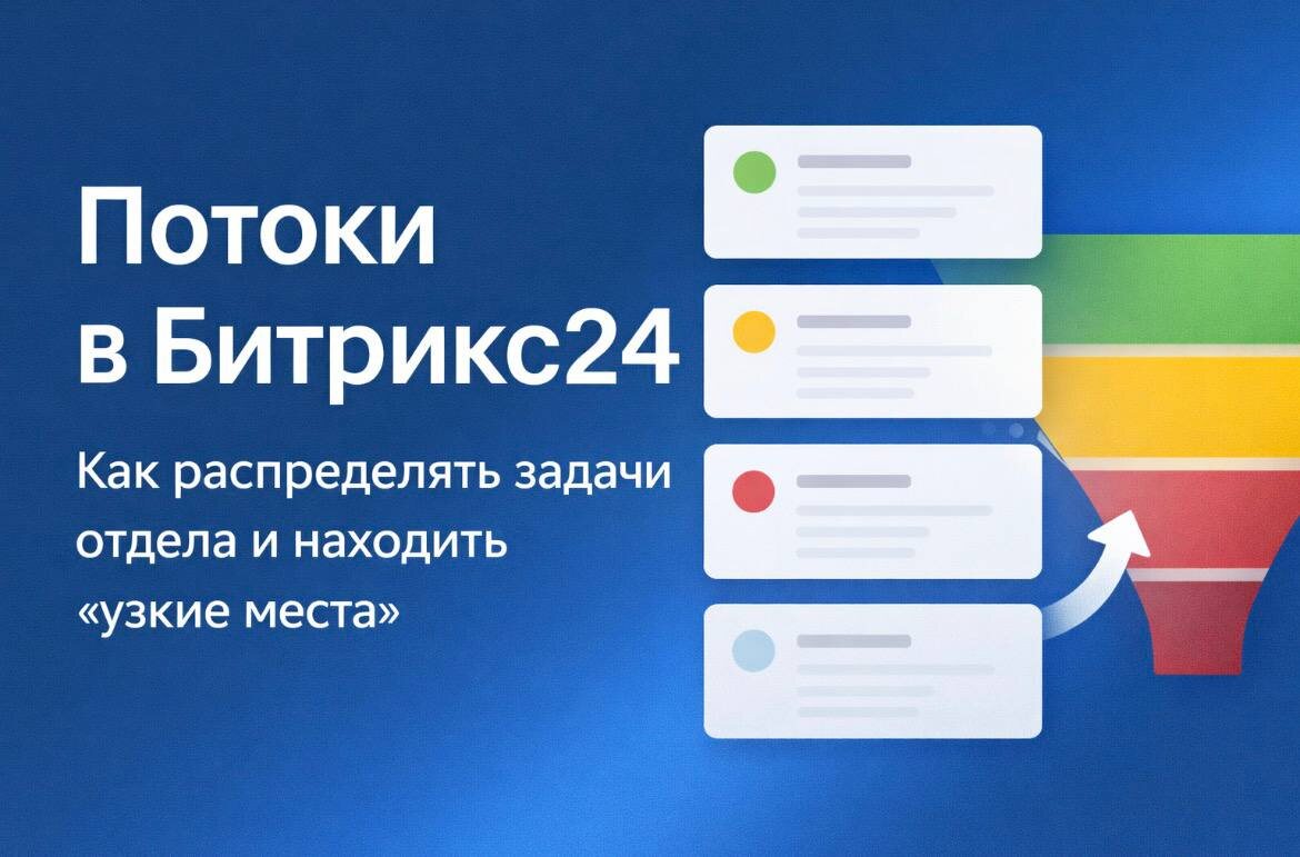 Потоки в Битрикс24 — это инструмент, который наводит порядок в работе отделов и процессов: задачи распределяются автоматически, нагрузка становится прозрачной, а «узкие места» видны сразу.