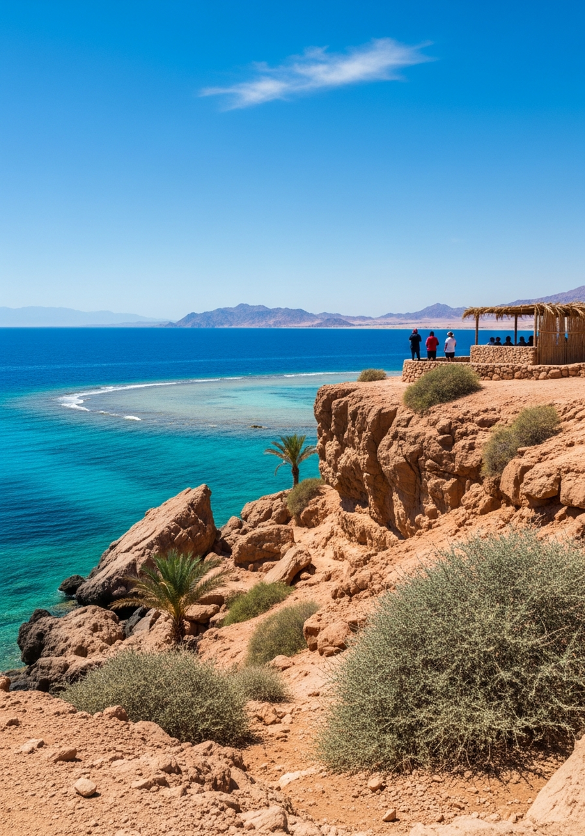 Легенда Шарм-эль-Шейха — атмосферное кафе на скалистом утёсе над морем. Бедуинский дизайн с подушками и фонариками, панорамный вид на закат и лучший кальян на курорте делают это место культовым.
