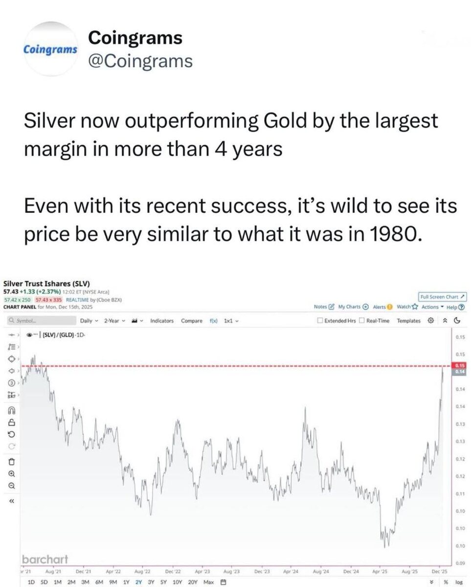 В начале 1980-х годов серебро торговалось вблизи своих исторических максимумов. Вложив тогда $10 000 в серебро, вы бы получили примерно 200 унций. Сегодня, когда серебро стоит около $60–65 за унцию, эта позиция стоила бы около $13 000. Одна из популярных рекомендаций Роберта Киосаки — покупать золото и серебро. Однако, открыв графики, вы увидите, что их тенденция в основном находится в боковике. Люди, купившие сейчас на пиках, могут получить прибыль только через 20–40 лет. И даже тогда прибыль может быть незначительной. #серебро #золото #киосаки #clv #gold