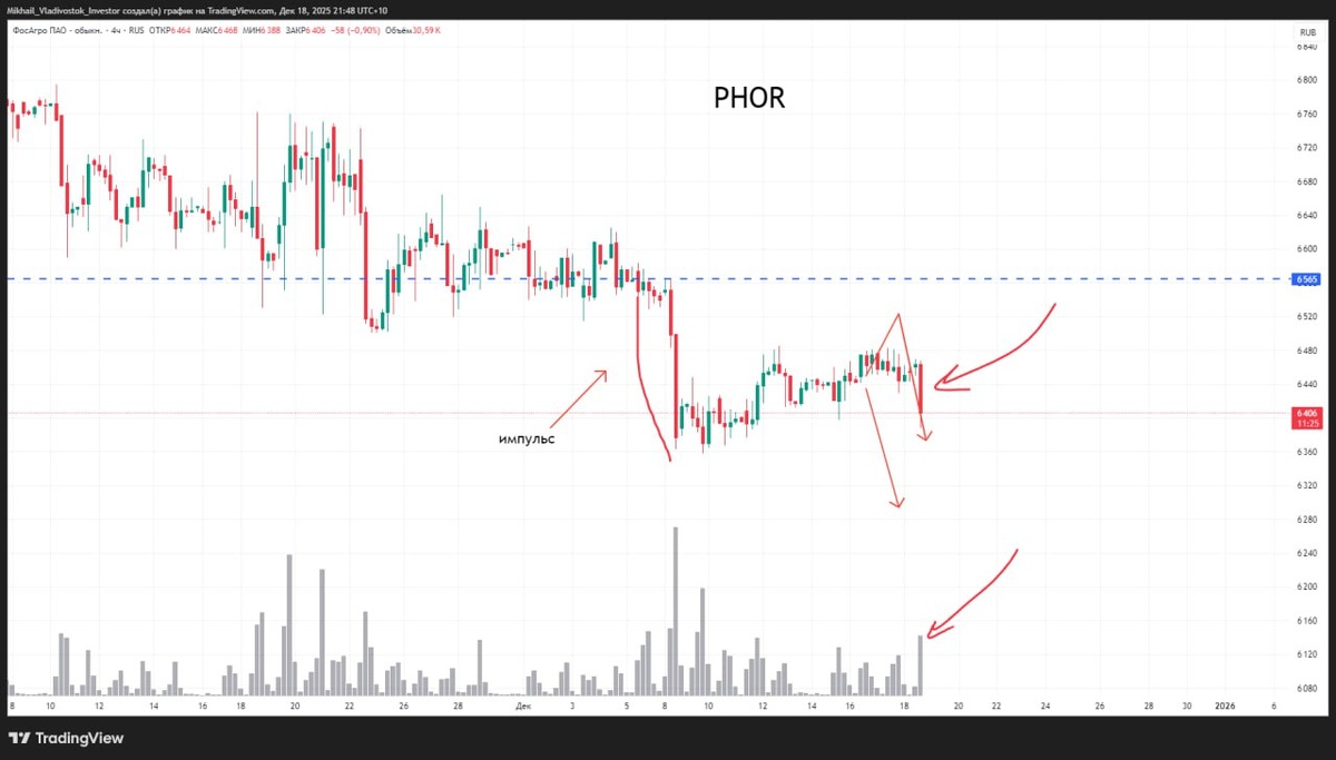 В боковой коррекции нет совсем спроса. Последняя свеча падения крупная почти полная и на повышенном объеме. Если не увидим очень резкого выкупа, который может быть связан разве что с геополитикой, то большая вероятность падения. Наблюдаем 😉 #PHOR #шорт