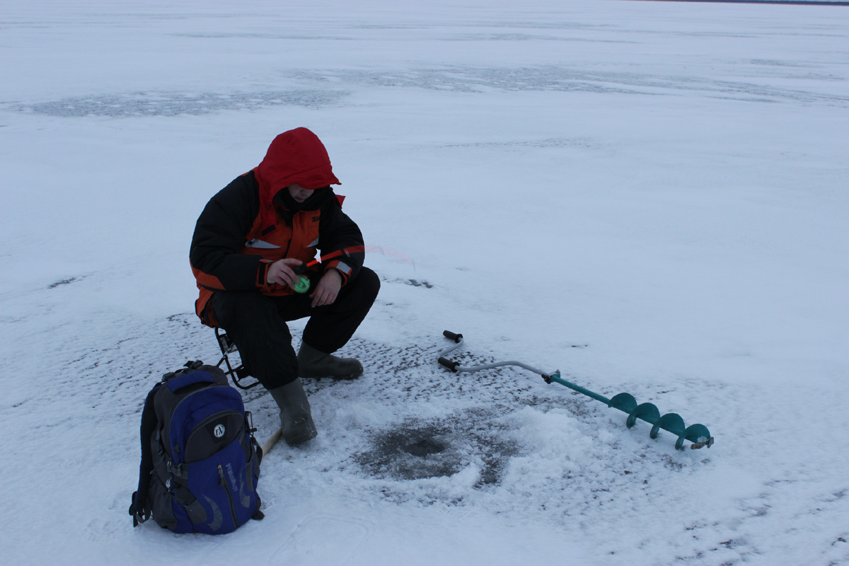 - Важно: При использовании ледобуров большого диаметра, особенно на малых глубинах, не забывайте о светомаскировке лунки.