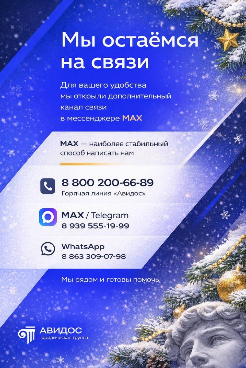 Это решение принято с учётом возможных ограничений в работе WhatsApp и Telegram, чтобы вы всегда могли оперативно связаться с нами. Все привычные способы связи сохраняются. Мы просто усилили доступность и надёжность коммуникации. Наши контакты: 📞 Горячая линия: 8 800 200-66-89 💬 MAX / Telegram: 8 939 555-19-99 📱 WhatsApp: 8 863 309-07-98 Мы всегда рядом и готовы помочь