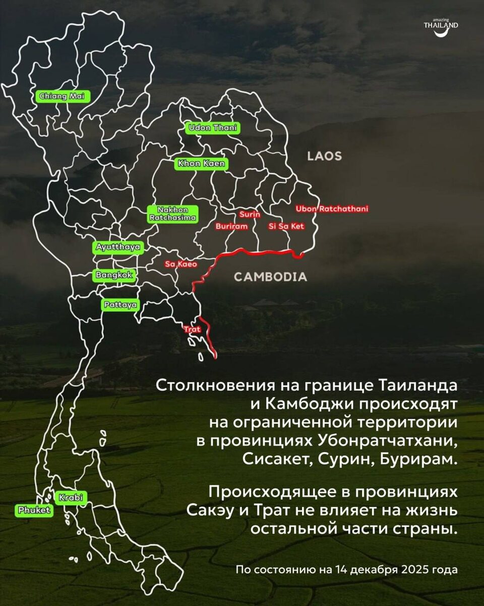 Туристическое управление Таиланда сообщает, что индустрия путешествий продолжает функционировать в штатном режиме по всей стране без изменений. Меры безопасности продолжают действовать в семи провинциях вдоль границы Таиланда и Камбоджи: Убонратчатхани, Сисакет, Сурин, Бурирам, Сакэу, Чантхабури и Трат. По всей стране внутренние и международные транспортные услуги — включая авиа-, железнодорожное, автобусное и водное сообщение — работают в обычном режиме. Крупнейшие туристические центры, такие как Бангкок, Чианг Май, Пхукет, Самуи, Краби, Паттайя (Чонбури) и Аюттхая, по-прежнему открыты для приема путешественников. Перечень ограничений в работе транспортных узлов, контрольно-пропускных пунктов и автомобильных трасс можно найти по ссылке. #Таиланд #Таиланд_новости