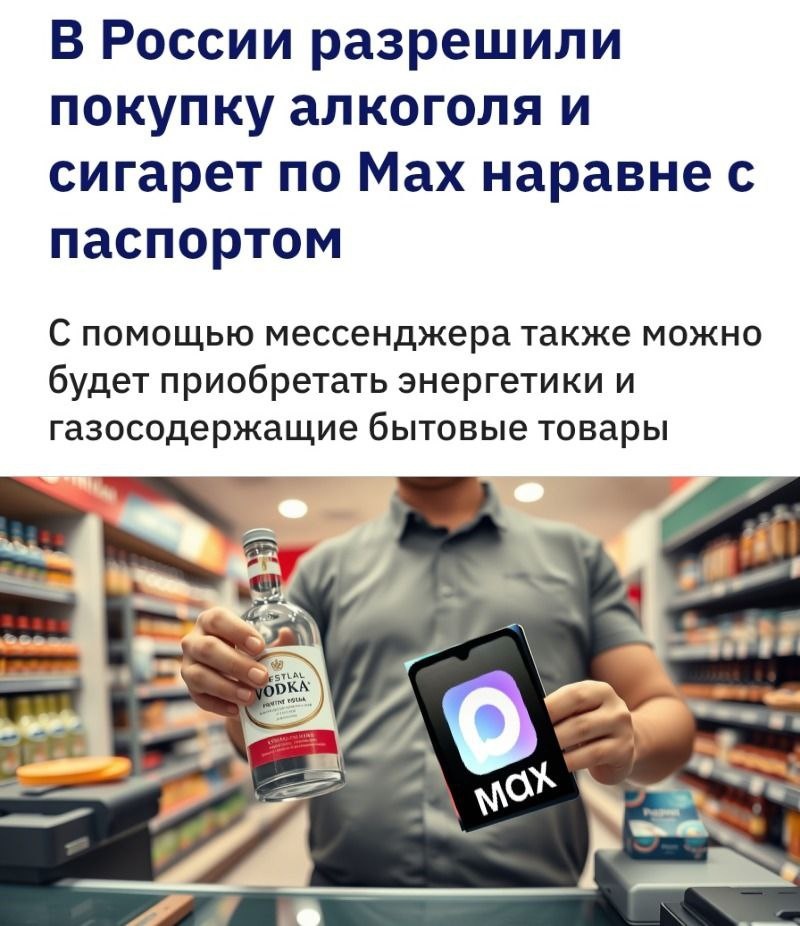 подтверждения возраста через мессенджер Max при покупке алкоголя, табака, энергетиков и других товаров с возрастными ограничениями. Если президент РФ подпишет закон, он вступит в силу с момента опубликования 🚨@mediacub🚨