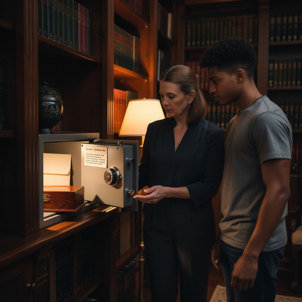 Она подвела его к стальному сейфу, встроенному в библиотечную стену. Открыла его не обычным ключом, а комбинацией. Внутри лежал небольшой лакированный деревянный ящик и толстый конверт из плотной бумаги.
