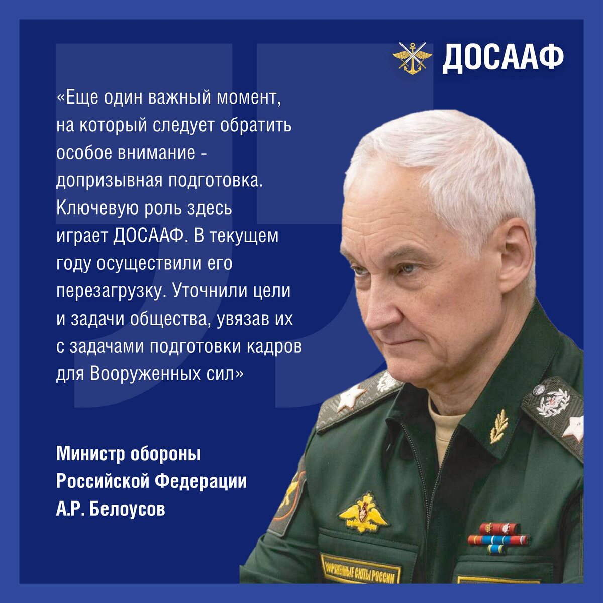 По итогам выступления Министра обороны Российской Федерации Андрея Белоусова на расширенной коллегии роль ДОСААФ России в системе подготовки кадрового резерва была отражена в федеральной информационной повестке. Официальный сайт Президента Российской Федерации «Ключевую роль в системе допризывной подготовки играет ДОСААФ. В текущем году проведена перезагрузка организации, уточнены её цели и задачи с учётом подготовки кадров для Вооружённых Сил». Министерство обороны Российской Федерации «Пересмотрен функционал региональных отделений ДОСААФ с повышением их самостоятельности и ответственности, а также выстроено взаимодействие с командованием военных округов». ТАСС «В 2025 году ДОСААФ подготовил более 27 тысяч призывников по 20 военно-учётным специальностям, включая новые направления по операторам БПЛА и наземных роботизированных комплексов». Также ДОСААФ России получило отражение в других федеральных и отраслевых СМИ: • Царьград • Завтра • Капитал Страны • Красная звезда • Бизнес-Жур