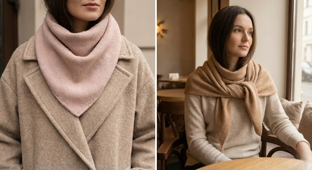 Капсульный гардероб: 3 вязаных аксессуара, которые должны быть у каждой женщины Вам знакомо чувство, когда открываешь шкаф, вещей много, а надеть нечего? Или когда любимое пальто кажется слишком скучным, а пуховик — слишком обыденным? Секрет стильного образа не в количестве одежды, а в правильных деталях. Вязаная капсула — это тот самый волшебный инструмент, который превращает обычную зимнюю рутину в модный выход. Вам не нужно скупать половину магазина пряжи. Достаточно всего трех идеально подобранных элементов. Давайте разберем «Святую Троицу» вязаного гардероба, которая спасет любой аутфит. 1. Нейтральный бактус: Ваш серый кардинал 🧣 Забудьте о громоздких шарфах, которые невозможно красиво уложить. Бактус (треугольный платок) — это король универсальности. Почему он нужен: Нейтральный оттенок (бежевый, серый, пудровый, кэмел) работает как "клей", собирая образ воедино. Бактус можно носить углом вперед для тепла и стиля, или накинуть на плечи как шаль в прохладном помещении. Совет: