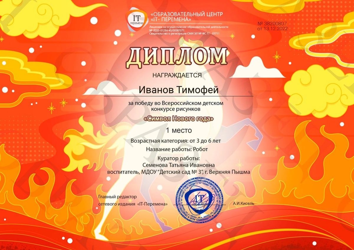"! Результаты и наградные документы уже размещены в нашем новом поисковом телеграм-боте "Переменка": https://t.me/itperemenka_bot На сайте на странице результатов итоги будут опубликованы 22 декабря в 8:00 по МСК. Заказать оригиналы наградных документов, напечатанных в высоком качестве на плотной бумаге, можно под соответствующим дипломом.