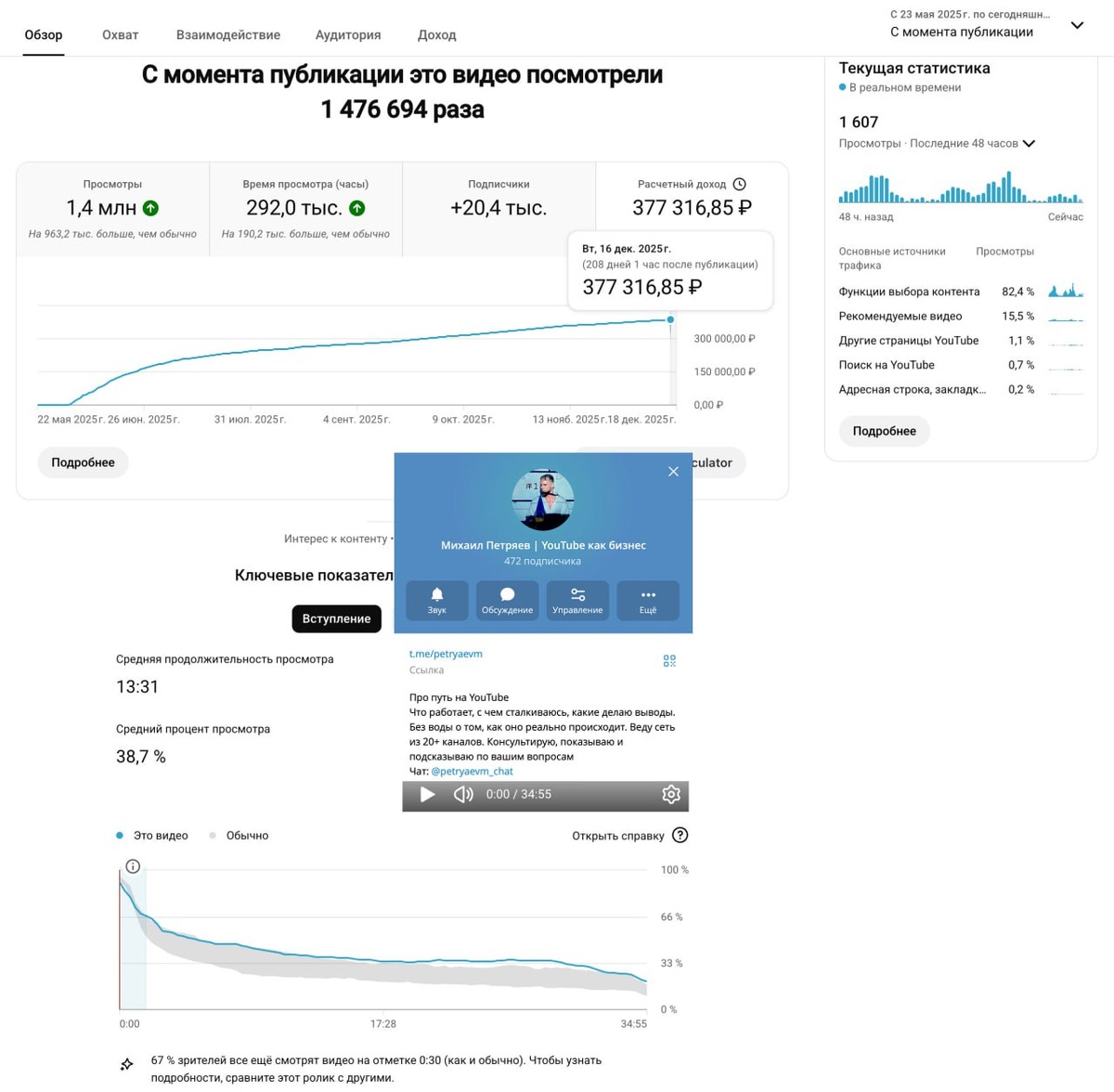 💡 Примеры контента, который заходит на "любимых" персонах: → "Один день из жизни [звезды]" → "Как живет [звезда]: редкие факты" → "Что ест [звезда] на завтрак: разбор рациона" → "[Звезда] о своем утреннем ритуале" → "[Звезда] и привычки, о которых вы не знали" → "Как [звезда] готовится к выступлениям: закулисье" → "Тренировки [звезды]: что делает каждый день" → "Семейные традиции [звезды]" У меня получилось на таких персонах сделать видео-миллионники. И до сих пор, спустя год, эти ролики несут свои дивиденды. Почему? Потому что: ✔️ Аудитория их любит → активность под видео высокая, чаще шерят ✔️ Контент позитивный/нейтральный → нет хейта в комментах (это важно для большой фан-базы, они как пираньи сожрут любого) ✔️ Персоны популярные → постоянный интерес ✔️ Ниша вечнозеленая → видео работают годами 🎯 Вывод: Алгоритм YouTube замечает контент не потому, что он "качественный" Он замечает контент, который: → Вызывает активность (комменты, лайки, репосты) → Удерживает зрителя → Попад