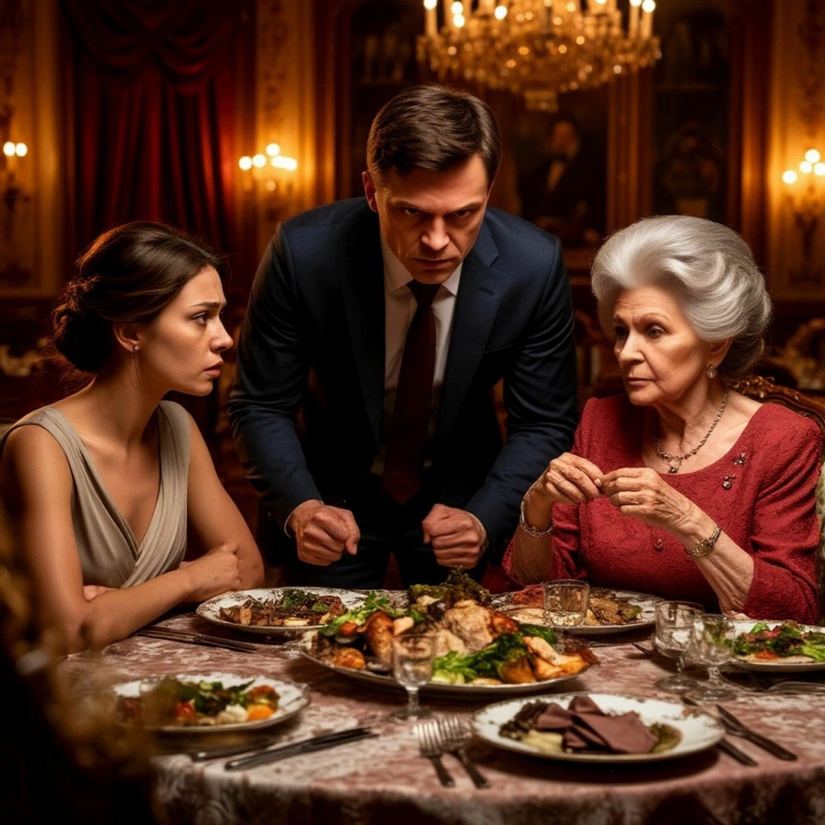 Он не выдержал. С громким, животным звуком он схватил свой полный бокал — дорогой, хрустальный, из того самого сервиза, — и со всей силы швырнул его в стену за моей спиной. Удар был оглушительным. Тысячи сверкающих осколков, похожих на застывшие слезы, брызнули во все стороны и с тихим, печальным звоном посыпались на паркет.