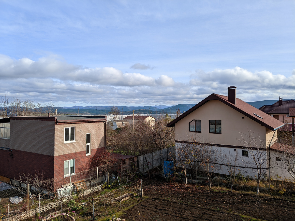 День сегодня начался уже с утра солнечным, погода стабильно теплая по меркам крымского декабря, хотя бывали дни и пожарче. Немного облаков на пейзаже не мешают ощущать приятное тепло с небес. Хвостатый народ радостно собирал солнечные зайчики на своих зубастых мордах лица. Мы завтракали гречневой кашей с молоком, запивая ароматным кофе. Дымка что-то снизу требовала. А во дворе все замечательно. Даже сосед Васька сегодня радовался солнышку и бегал туда-сюда, в поисках Светланы, чтобы она его покормила. Он теперь оббегает по соседскому участку, благо там нет собак, забирается на курятник и оттуда наблюдает за жизнью нашей территории. Иногда его замечают наши клыкастые, подбегают и пристально на него смотрят, молчат, не лают, не рычат, просто молча наблюдают. Васька кот не глупый, он не спускается, там, на крыше курятника, для него безопасней. Тигра проверяет, не стырил ли никто у нас на грядке зеленый лук и петрушку, охраняет, говорит, что до Нового года никому не позволит тырить зеле
