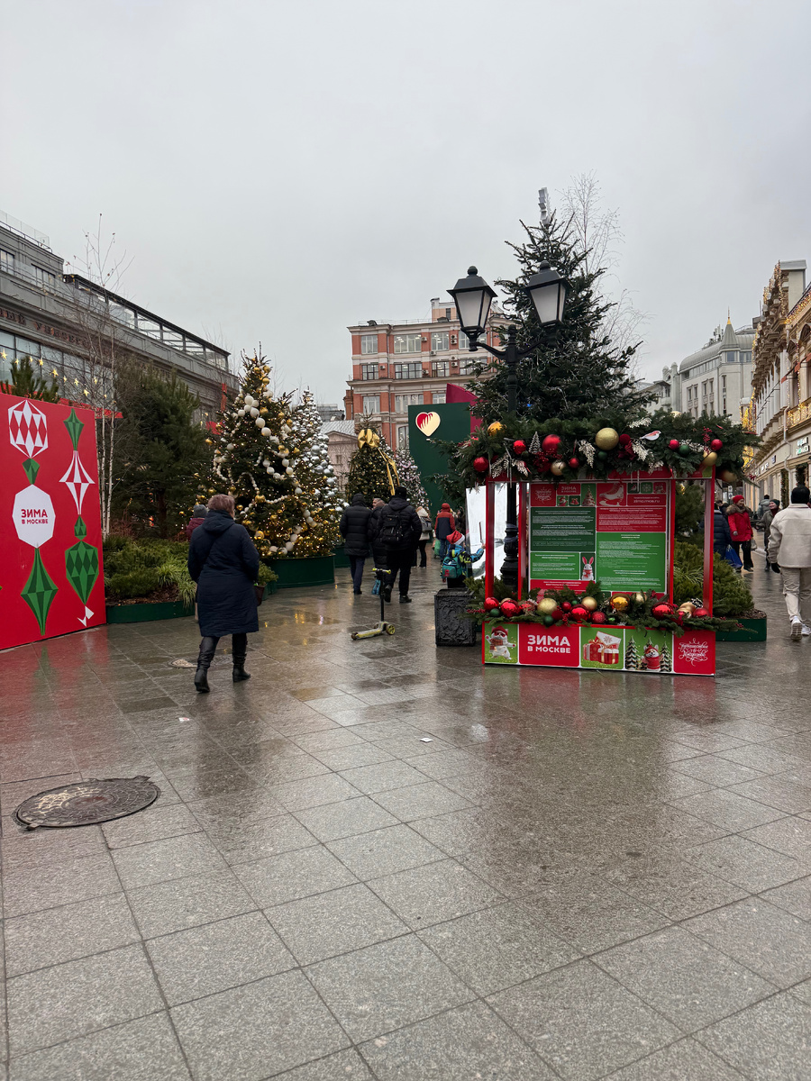 На улице Кузнецкий мост возле ЦУМа расположены несколько дизайнерских ёлочек. Из имён/фамилий дизайнеров я узнала только Егора Крида, хотя я не знала, что он дизайнер.