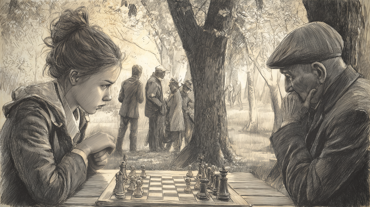 Старик играл... иначе. Не лучше и не хуже — просто иначе. Его ходы были одновременно и классическими, и совершенно неожиданными. Он жертвовал фигуры там, где любой нормальный игрок стал бы их защищать, и защищал то, что казалось совершенно неважным. Аня чувствовала, как ее мозг начинает работать в непривычном режиме, пытаясь понять логику этой странной игры.