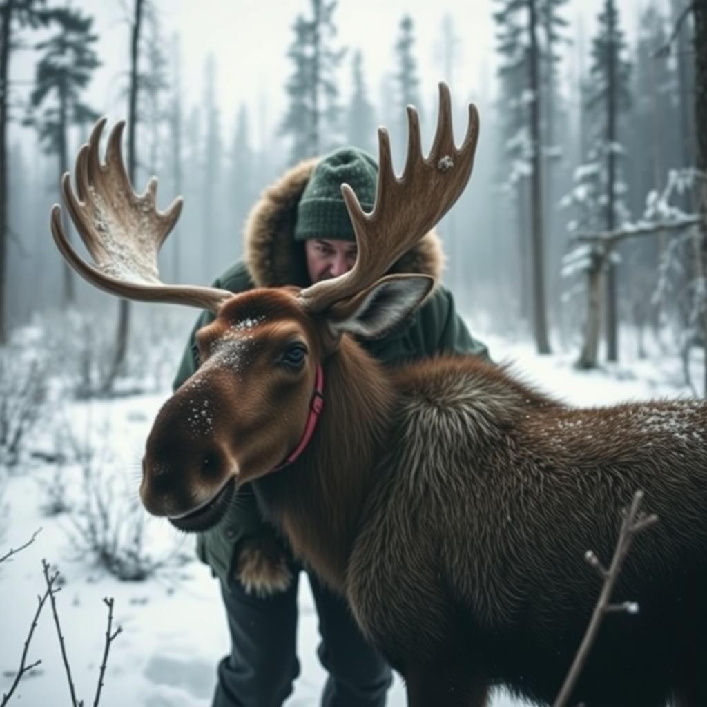 Лось стоял, поводя огромными ушами. Он чувствовал запах человека, запах тревоги, исходящий от дома. Но он помнил этот голос. Голос, который когда-то, в ледяной воде, говорил те же успокаивающие слова. Голос, который звал его к теплому молоку.