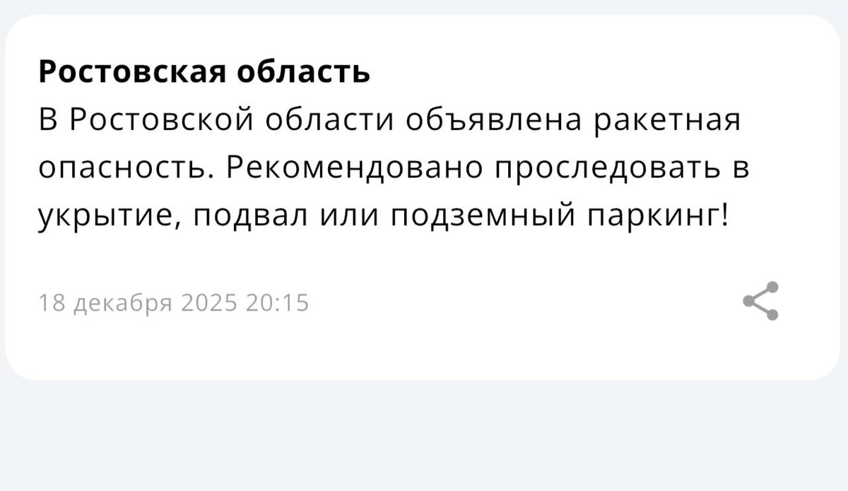 ❗️❗️❗️В Ростовской области объявлена Ракетная опасность