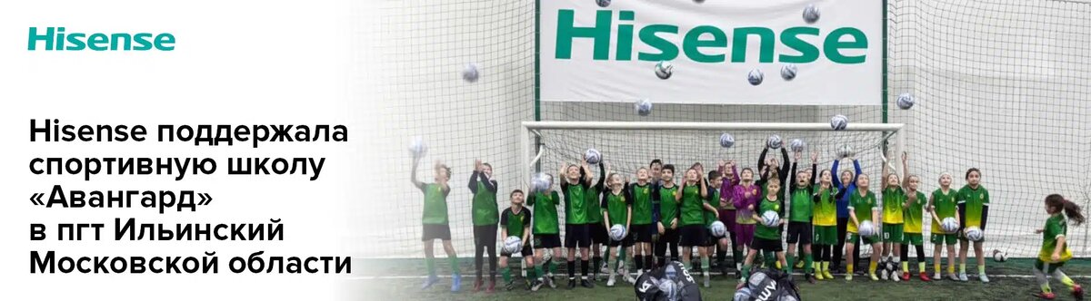 Будучи спонсором глобальных мероприятий в сфере футбола, компания Hisense, один из ведущих мировых производителей телевизионной и бытовой техники, реализовала проект по поддержке достижений юных российских спортсменов. Hisense выделила средства на закупку 100 профессиональных мячей для футболистов, которые обучаются в спортивной школе «Авангард» в поселке городского типа Ильинский (Раменский городской округ Московской области). 10 декабря в школе состоялось мероприятие, посвященное итогам года, в рамках которого компания вручила руководству сертификат на приобретение инвентаря. Hisense приняла участие в церемонии награждения ребят за особые успехи и вручила воспитанникам «Авангарда» сувениры. Для Hisense, которая на протяжении многих лет поддерживает спорт на мировом уровне, особую важность имеют проекты, связанные с помощью детскому спорту. «Сегодня перед нами мальчики и девочки, которые в любые погоду и время года идут на тренировки и старательно трудятся, превозмогая себя, – говори