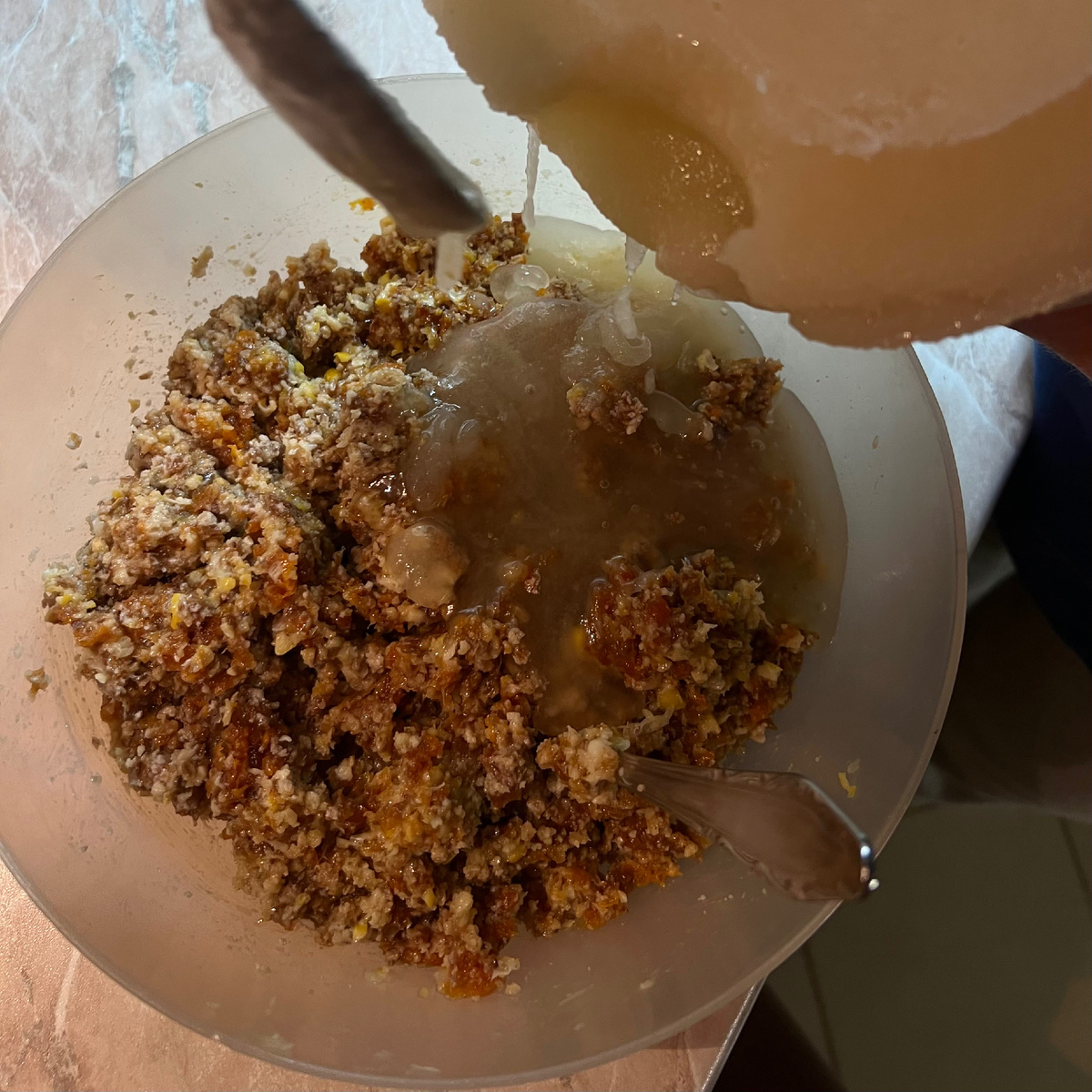 Добавьте мёд и тщательно перемешайте.
