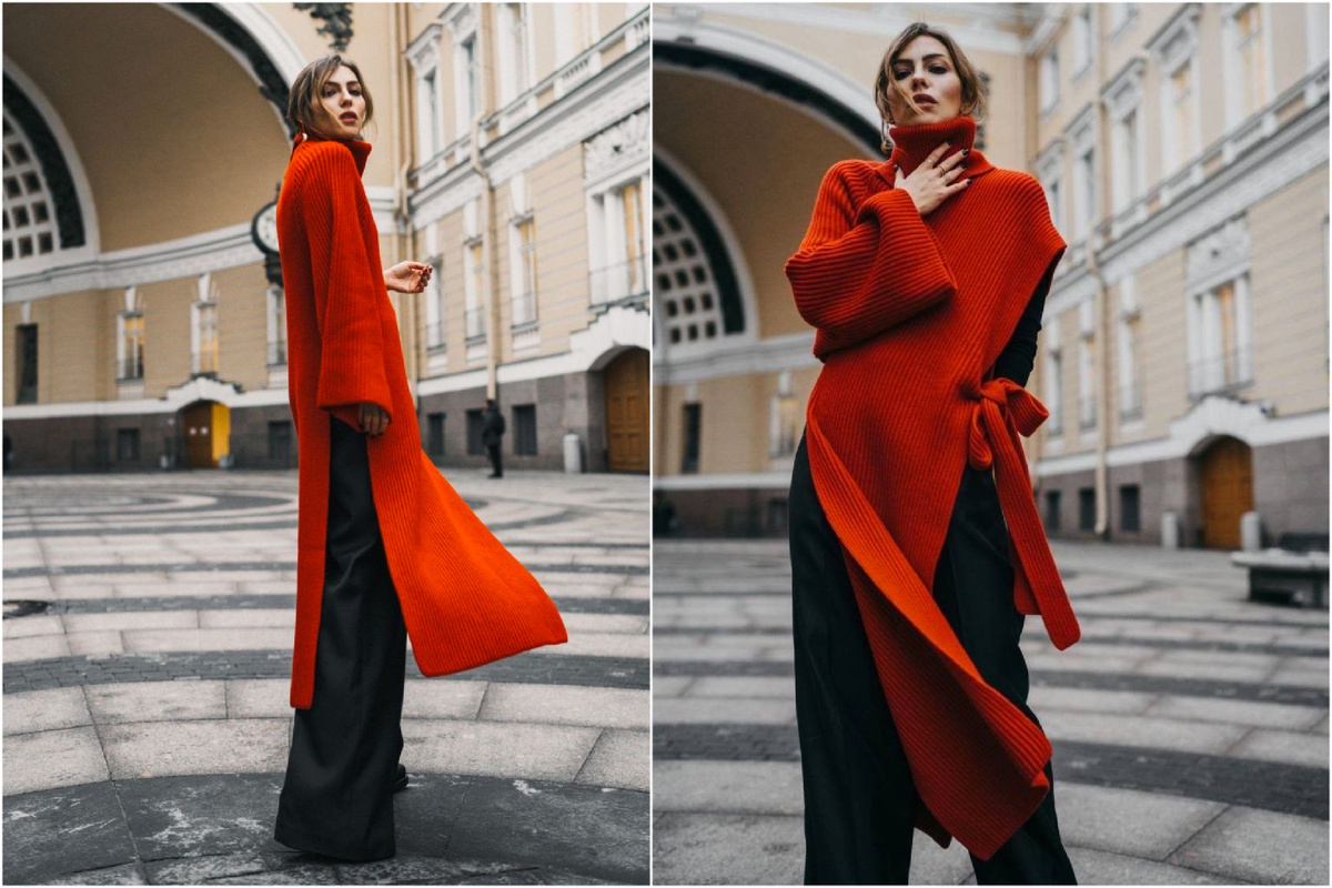 2. Силуэт — это всё. Идеальный крой — узкий, длинный. Свитер-платье, который струится по фигуре, как второй слой кожи.