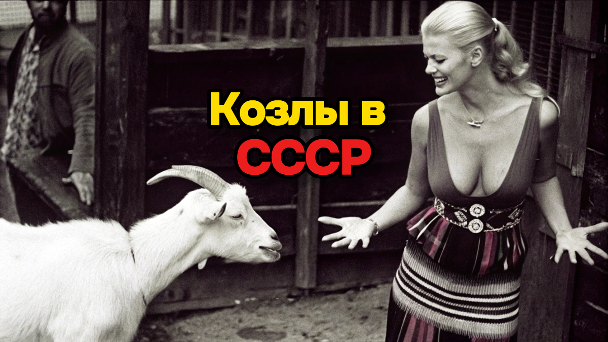 Девушка в купальнике держит на руках маленького козлёнка. Светлые волосы уложены в аккуратные локоны, улыбка до ушей - она явно не ожидала, что её сфотографируют именно в этот момент. Козлёнок тёплый, мягкий, пахнет молоком и чем-то сладковатым, как пахнут все детёныши. За спиной деревянный забор и размытый зелёный фон - двор обычной деревенской усадьбы. Но в этом кадре - вся нежность того времени, когда животные были не просто скотом, а частью семьи.