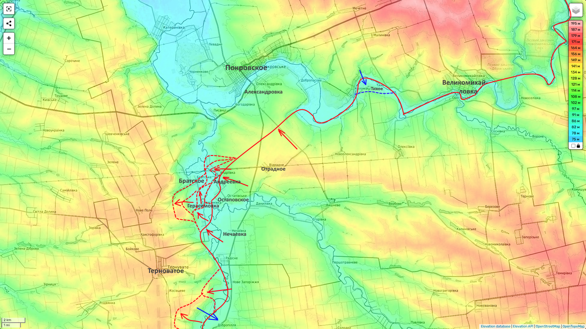Сегодня в своем видеообзоре я рассказал о наших успехах на западном берегу реки Ганчур севернее Терноватого (в районе Герасимовки). Где мы серьезно расширили плацдарм и постепенно выходим к Теронватому с северо-востока. По итогу утренних штурмовок (и эта информация уже появилась в наших мониторинговых каналах) подразделения группировки «Восток» заметно расширили и плацдарм и юго-восточнее Терноватого (со стороны н.п. Доброполье). Фактически мы тем самым объединили два наших миниплацдарма и создали один устойчивый, который теперь преобретает оперативно-тактическое значение. И теперь Терноватое, тем самым, мы берем в клещи. Держим кулаки и молимся за наших парней...