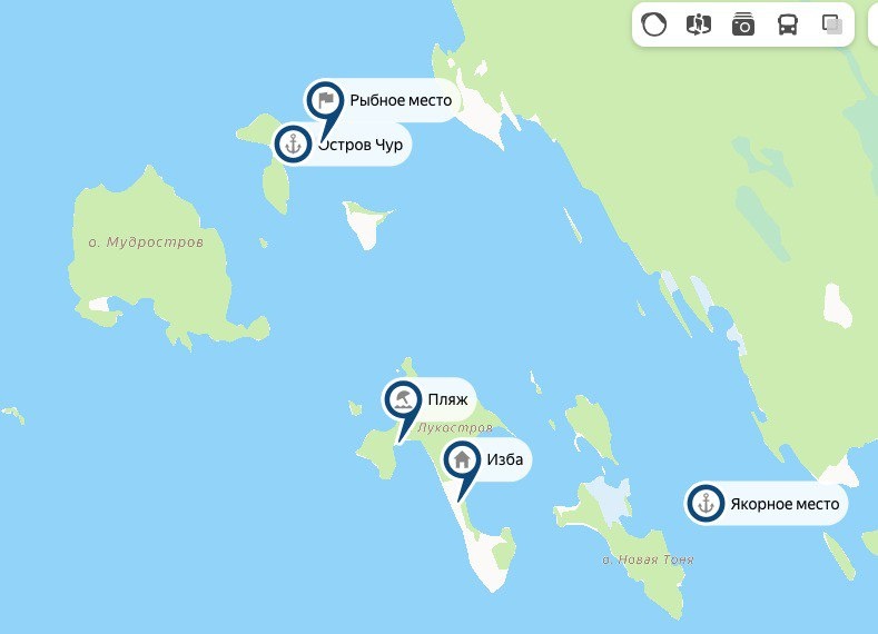 Чур. От Кижей 40 км. Встать можно носом к берегу. Унойские острова называют карельскими Мальдивами. Красивейшие острова с пляжами и великолепной рыбалкой. Вот где нужен запас времени! На исследование архипелага, на пляж, рыбалку, лучше отправиться на динги. Из-за сильного течения и, как следствие, обилия кормовой базы, у мысов (которые нужно знать, естественно), водятся лещи огромных, трофейных размеров.