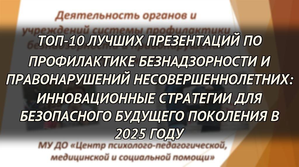В данной статье мы представляем ТОП-10 лучших презентаций по профилактике безнадзорности и правонарушений несовершеннолетних, отобранных экспертами за их инновационные идеи, практическую применимость и визуальную убедительность. Эти материалы помогут специалистам, педагогам и родителям получить ценные инструменты для мероприятий в образовательных центрах, на конференциях и в повседневной работе, способствуя формированию более безопасного общества к