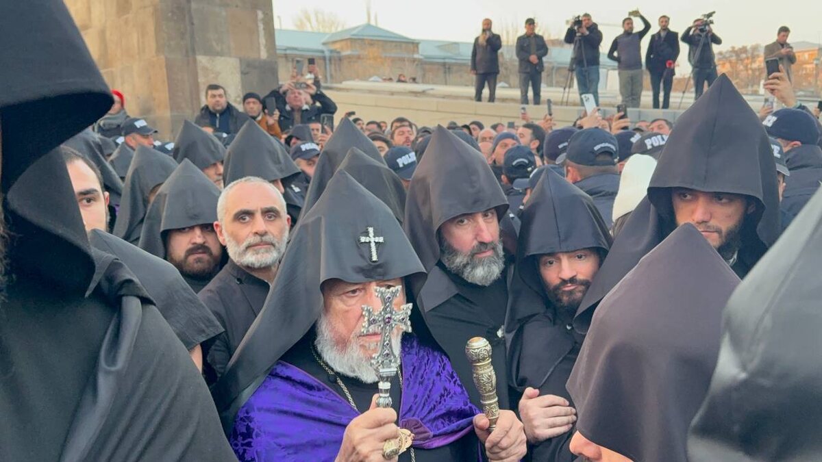 Ամենայն հայոց կաթողիկոս Գարեգին Բ–ն հոգևորականների ուղեկցությամբ Վեհարանից եկավ Մայր տաճար