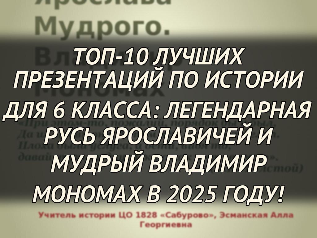 В этой статье мы представим топ-10 лучших презентаций на тему «Русь при Ярославичах. Владимир Мономах», созданных специально для учеников 6 класса в 2025 году. Эти презентации помогут вам легко и интересно узнать о ключевых событиях, героях и достижениях того времени, чтобы подготовиться к урокам истории и больше узнать о славном прошлом нашей Родины.