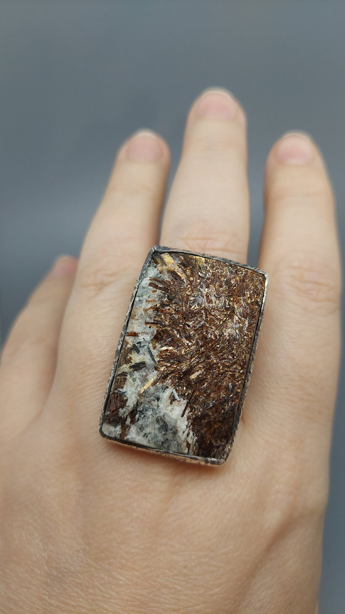 Этот перстень с астрофиллитом восхищает красотой природного материала. Роскошные лучики астрофиллита сияют в белом альбите🔥