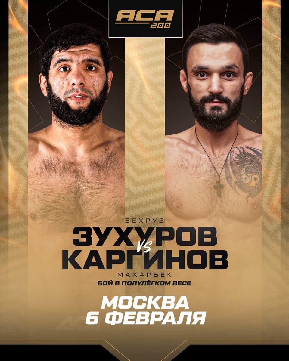 года — АСА 200. Бехрузу Зухурову удалось пройти серьезную оппозицию и новое испытание в лице Махарбека Каргинова может вылиться в незабываемое сражение в клетке! Прямиком из Челябинска - Давлатманд Чупонов попробует одолеть так же серьезного соперника в лице Богдана Плутахина, который успел увеличить свое победное шествие до 5 выигранных поединков. 🔗НЕ ПРОПУСТИТЕ!