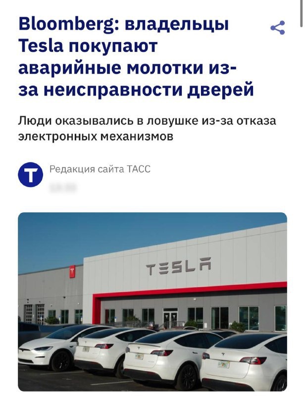 Владельцы автомобилей Tesla спешно приобретают молотки из-за технической неисправности