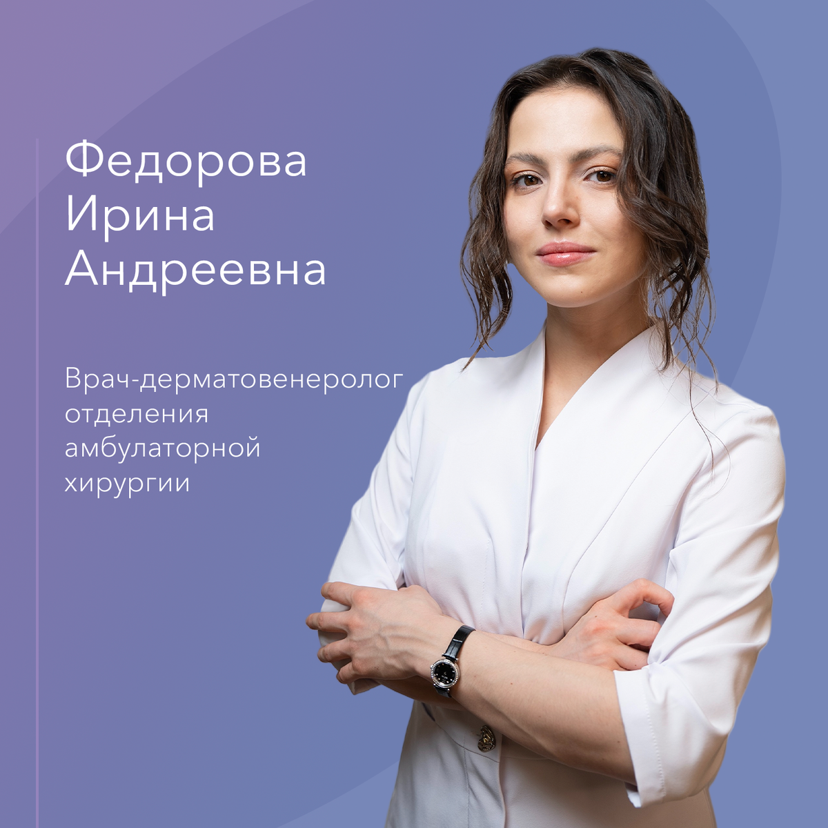 Наша команда растёт! Рады представить вам нового врача-дерматовенеролога отделения амбулаторной хирургии — Ирину Андреевну Федорову