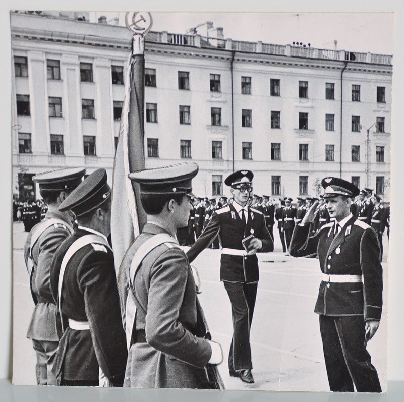 Первый выпуск Курганского высшего военно-политического авиационного училища. Прощание со Знаменем. | 1971 г. Источник: ГАУК Курганский областной краеведческий музей https://vk.cc/cSvzVW