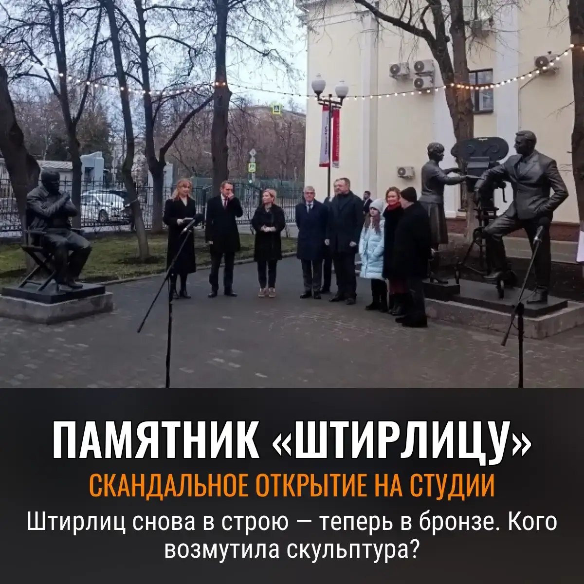 Торжественное открытие посвятили куче юбилеев: самой студии — аж 110 лет, разведке 105, плюс банальный повод — 80 лет Победы. Министр, историки и скульптор ради события выбрались погреться на славе чужих достижений. Сюжет «Мгновений» и Штирлиц будоражили советских граждан во времена, когда телевизор был не плоский, а круглый. Петляющая между тайными кроссвордами и не менее закрученной идеологией, лента уже 51 год как бьет рекорды по количеству отсылок в тостах. Киностудия же и в XXI веке не останавливается: клепает всё новые хиты, хотя, честно говоря, до былого размаха далеко. Все ждут, когда же снимут «18 мгновений весны»., Следите за новостями 📩