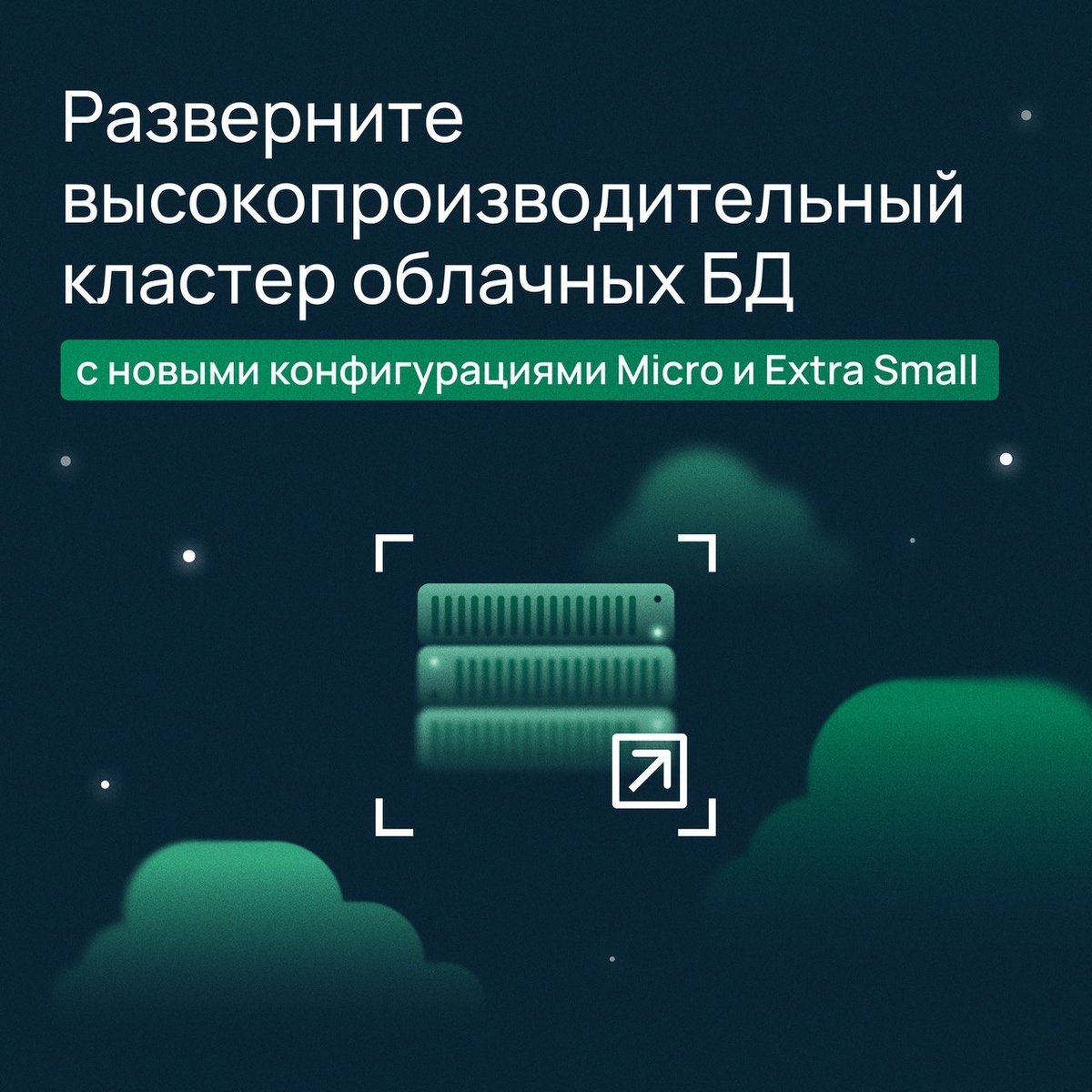 Новые конфигурации в БД на выделенном облачном сервере Они легко заменят средние базы данных в облаке, но с большей производительностью дисковой подсистемы — до 1,5 млн IOPS. Теперь вы можете развернуть и совсем небольшие кластеры: 🔸 Micro = 14 vCPU, 32 ГБ RAM, 0,5 TБ диски 🔸 Extra Small = 14 vCPU, 64 ГБ RAM, 1 TБ диски Напомним, что базы данных на выделенном облачном сервере — полностью готовый кластер DBaaS, ресурсы которого принадлежат вам. Только в Selectel вы можете получить целый хост с управляемыми БД. Настройка, обслуживание IT-инфраструктуры и бесплатные бэкапы — на нас. Разверните готовый кластер баз данных в пару кликов ➡️