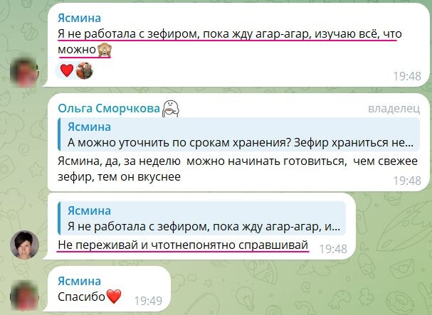 Я захожу в рабочие чаты своих курсов и интенсивов не из любопытства. И не «когда будет время». Я захожу туда каждый час. Иногда чаще. Потому что если зефирная масса уже тёплая и жить ей осталось минут десять, то философствовать поздно – надо спасать. Сообщения я читаю быстро. Смотрю фото. Ловлю интонации. И почти всегда понимаю не только что пошло не так, но и на каком моменте человек сейчас готов психануть и всё бросить. Почти на каждом потоке я вижу одну и ту же историю. Меняются имена, города и миски. Сюжет – как под копирку. Фраза безобидная. Вежливая. Перевод с человеческого: «Мне страшно начать и убедиться, что я опять всё испорчу». Вот здесь девчатам часто хочется закрыть чат, накрыться пледом и уйти в жизнь без зефира. И, если честно, многие так и делают. Но иногда человек не сдаётся (и тут начинается самое интересное) Иногда вместо: «Да ну его!» появляется вопрос. Потом ещё один. Иногда с припиской: «Извините, что снова я…» Я всегда улыбаюсь в этот момент. Потому что знаю: есл
