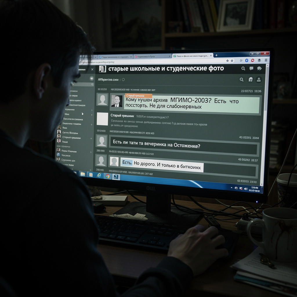 Поиски в цифровых трущобах интернета не принесли мгновенного результата. Часы, проведённые за экраном в полумраке квартиры, сливались в одно монотонное напряжение. Илья искал по хешам, по датам, по ключевым словам из заметок Стива, по всему, что могло быть связано с МГИМО и 2003 годом. Он погрузился в мир заброшенных форумов, зашифрованных чатов и цифрового мусора, где время от времени всплывали самые тёмные секреты.
