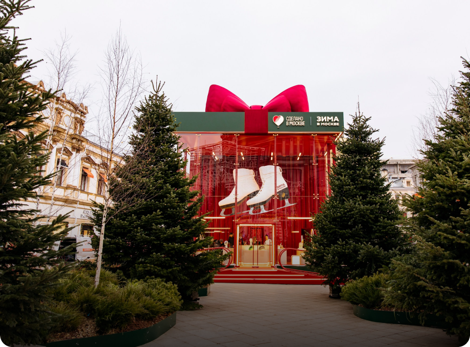 В столице начали работать арт-павильоны проекта «Сделано в Москве». Маркеты с товарами столичных брендов появились на городских улицах и площадях уже в третий раз. Тема этого сезона — «Фабрика подарков». «В течение зимы свою продукцию на 10 площадках представят больше 700 московских брендов. Посетители могут найти здесь одежду, косметику, детские и новогодние игрушки, товары для дома, сладости и многое другое», — рассказала заммэра Наталья Сергунина.» На Арбате открылись маркеты в виде главных символов Нового года и русской зимы — большого мандарина и самовара. В первом можно найти фрукты, сувениры и товары для творчества, а во втором — книги о столице, продукцию туристического бренда «Москва» и проекта «Московское чаепитие», а ещё сувениры театров и музеев. На витринах полюбившегося уже всем москвичам и гостям города павильона «Холодильник» на Тверском бульваре снова разместили мороженое, но к холодному сезону добавили ещё и горячие напитки со сладостями. Закупиться шоколадом, конфет