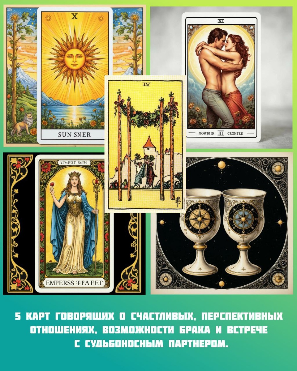 ☕️ Вот 5 карт, которые особенно красноречиво говорят о счастливых, перспективных отношениях, возможности брака и встрече с судьбоносным партнером.